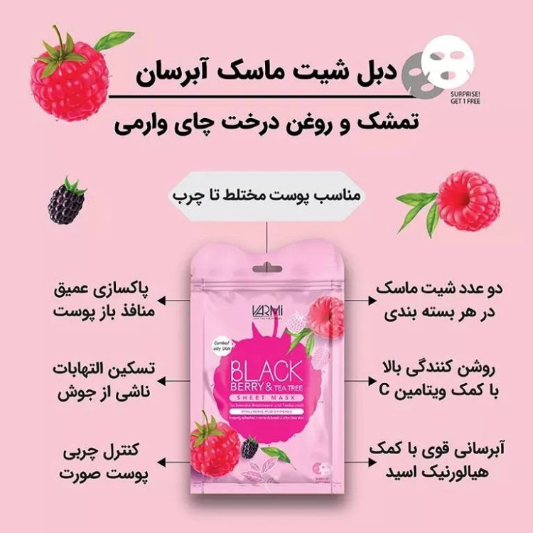 دبل شیت ماسک آبرسان تمشک و روغن درخت چای وارمی