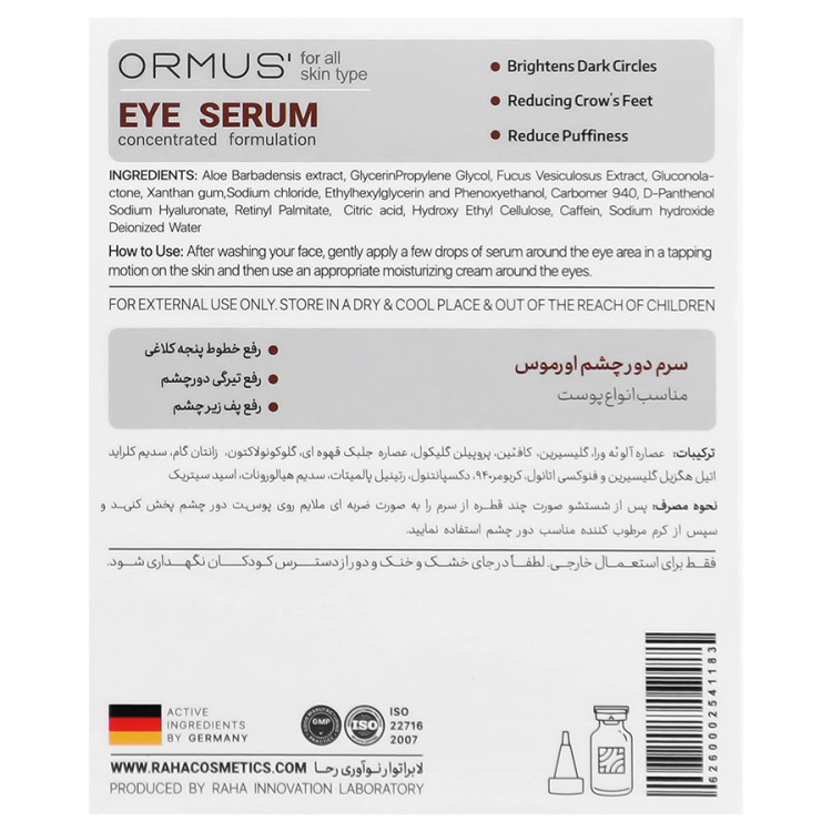 نحوه مصرف سرم دور چشم اورموس Ormus