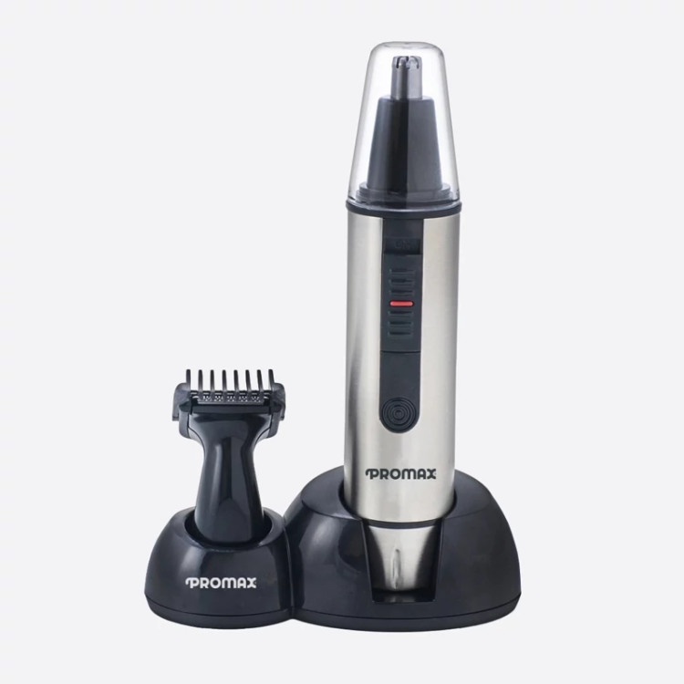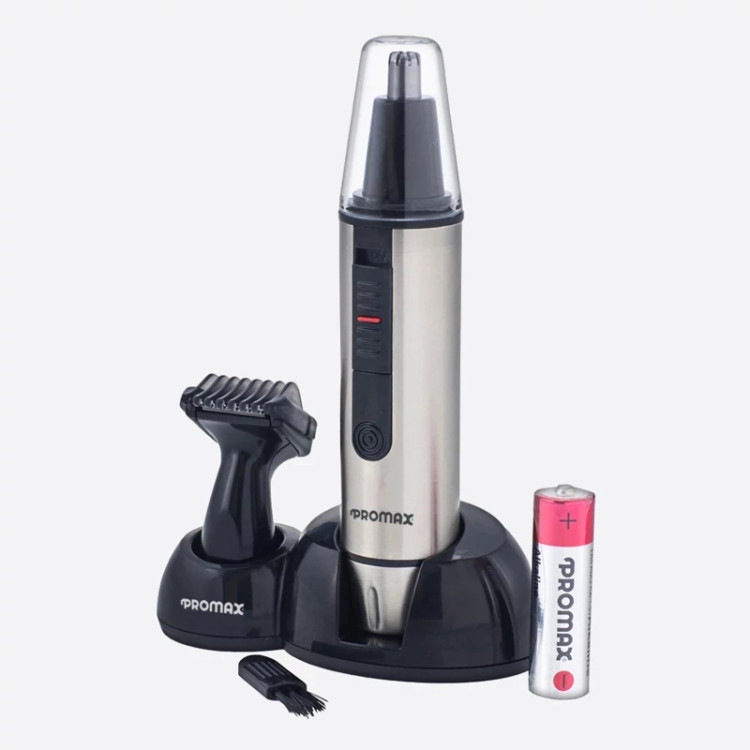 موزن گوش و بینی پرومکس مدل 3250T با طراحی بی نظیر دارای بدنه تمام استیل بوده که در اثر ضربه و سقوط بسیار مقاوم می باشد همچنین جهت رعایت بهداشت بیشتر، دارای درب پوش پلاستیکی شفاف می باشد. پرومکس Promax مدل 3250 دستگاهی است بسیار کوچک و سبک که توسط یک باطری قلمی کوچک قابل استفاده می باشد. با داشتن چنین دستگاهی شما می توانید موهای زائد گوش و بینی خود را بسیار سریع و راحت کوتاه نمائید.همچنین به همراه این دستگاه یک خط زن دقیق و کوچک با تیغه استیل نیز می باشد که می توان با اتصال آن به بدنه اصلی دستگاه به راحتی خط ریش و سیبیل را مرتب کرد. سیستم چرخشی قطع مو که در این دستگاه تعبیه شده نه تنها استفاده از دستگاه را ایمن نموده است بلکه باعث می شود تا مصرف کننده درد کمتری احساس کند.به علاوه این دستگاه کاملا ضد آب طراحی شده است، لذا می توان در حمام یا محیط های مرطوب دیگر با خیالی آسوده و راحت استفاده کرد. استفاده از موزن گوش و بینی پرومکس مدل 3250T بسیار ساده است فقط کافیه باطری 1.5 ولتی که به همراه دستگاه نیز می باشد را درون جایگاه قرار داده و سپس دستگاه را روشن کرد و با دقت به سمت موهای گوش و بینی یا صورت بگیرید و به آرامی اصلاح نمایید.جهت استفاده از بالاترین کارائی دستگاه فقط از باتری های آلکالاین استفاده نمایید و به هیچ عنوان از باطری های معمولی یا باطری های شارژی استفاده نکنیدزیرا موجب کاهش کارایی دستگاه می شود. مزیتی که در این دستگاه بکار رفته شده وجود لامپی است که دقیقا در کنار سری قرار گرفته شده، این چراغ بسیار ظریف به منظور ایجاد نور کافی در هنگام استفاده از دستگاه بوده و امکان استفاده از دستگاه را بی نهایت راحتتر می کند. همچنین به همراه این دستگاه یک پایه نگهدارنده پلاستیکی نیز می باشد که با استفاده از آن تمامی قطعات همیشه در دسترس بوده و گم نمی شوند.