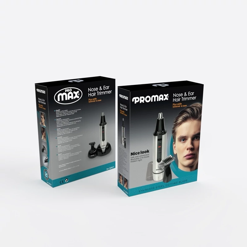 موزن گوش و بینی پرومکس مدل 3250T با طراحی بی نظیر دارای بدنه تمام استیل بوده که در اثر ضربه و سقوط بسیار مقاوم می باشد همچنین جهت رعایت بهداشت بیشتر، دارای درب پوش پلاستیکی شفاف می باشد. پرومکس Promax مدل 3250 دستگاهی است بسیار کوچک و سبک که توسط یک باطری قلمی کوچک قابل استفاده می باشد. با داشتن چنین دستگاهی شما می توانید موهای زائد گوش و بینی خود را بسیار سریع و راحت کوتاه نمائید.همچنین به همراه این دستگاه یک خط زن دقیق و کوچک با تیغه استیل نیز می باشد که می توان با اتصال آن به بدنه اصلی دستگاه به راحتی خط ریش و سیبیل را مرتب کرد. سیستم چرخشی قطع مو که در این دستگاه تعبیه شده نه تنها استفاده از دستگاه را ایمن نموده است بلکه باعث می شود تا مصرف کننده درد کمتری احساس کند.به علاوه این دستگاه کاملا ضد آب طراحی شده است، لذا می توان در حمام یا محیط های مرطوب دیگر با خیالی آسوده و راحت استفاده کرد. استفاده از موزن گوش و بینی پرومکس مدل 3250T بسیار ساده است فقط کافیه باطری 1.5 ولتی که به همراه دستگاه نیز می باشد را درون جایگاه قرار داده و سپس دستگاه را روشن کرد و با دقت به سمت موهای گوش و بینی یا صورت بگیرید و به آرامی اصلاح نمایید.جهت استفاده از بالاترین کارائی دستگاه فقط از باتری های آلکالاین استفاده نمایید و به هیچ عنوان از باطری های معمولی یا باطری های شارژی استفاده نکنیدزیرا موجب کاهش کارایی دستگاه می شود. مزیتی که در این دستگاه بکار رفته شده وجود لامپی است که دقیقا در کنار سری قرار گرفته شده، این چراغ بسیار ظریف به منظور ایجاد نور کافی در هنگام استفاده از دستگاه بوده و امکان استفاده از دستگاه را بی نهایت راحتتر می کند. همچنین به همراه این دستگاه یک پایه نگهدارنده پلاستیکی نیز می باشد که با استفاده از آن تمامی قطعات همیشه در دسترس بوده و گم نمی شوند.