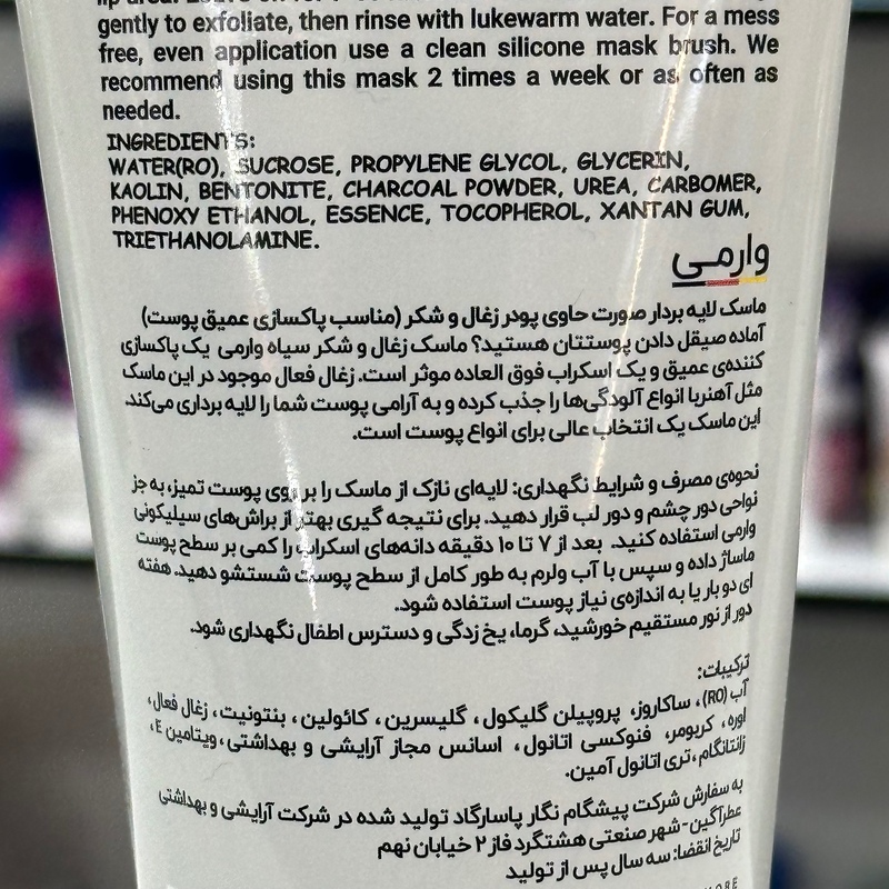 ژل ماسک لایه بردار زغال و شکر سیاه وارمی